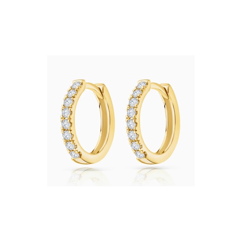 Pendientes Aros Oro amarillo 18kts 750mls , redondo 12,50mm de Diametro con nueve circonitas blancas engastadas ancho del pendiente 1,50mm