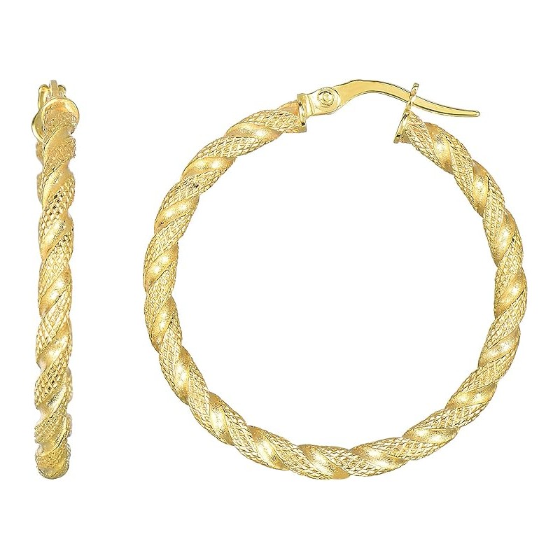 Pendientes Aros Oro amarillo 18kts 750mls , redondo en forma enroscado de 30mm de Diámetro y de 3,00mm de ancho, cierre tipo italiano.