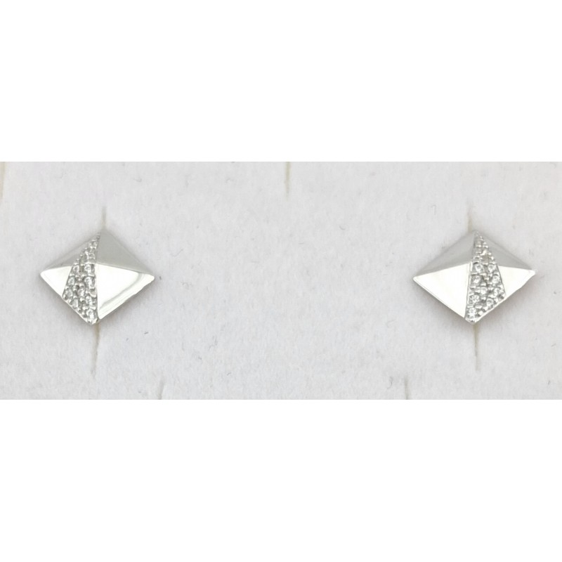 Pendientes para mujer fabricados en plata de 1ª ley 925mls , pendiente cuadrado con forma de piramide y tira de circonitas blancas , cierre a presión, tamaño del pendiente 8x8mm