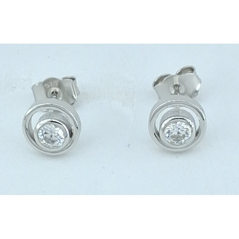 Pendientes mujer en plata de 1ª ley 925mls ,pendientes con doble circulo de diámetro 9mm y una circonita blanca, cierre a presión.