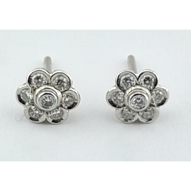Pendientes para mujer fabricados en oro de 1ª ley 18kilates 750mls , pendientes modelo rosetón con 14 diamantes naturales talla brillante con un peso total de 0,35quilates y cierre a presión