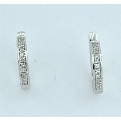 Pendientes para mujer fabricados en oro blanco de 1ª ley 18kilates 750mls, pendientes con 22 diamantes naturales talla brillante con un peso total de 0,10 quilates ,cierre catalan y con unas medidas 12,00x2,15mm (altoxancho)