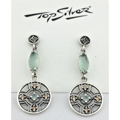 Pendientes para mujer colgantes fabricados en plata de 1ª ley 925mls , pendientes colgantes calados con piedras naturales largo total 40,00mm y de diametro el colgante redondo 15.50mm cierre a presión