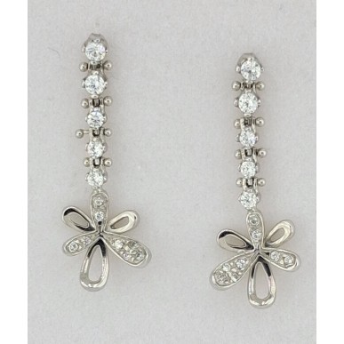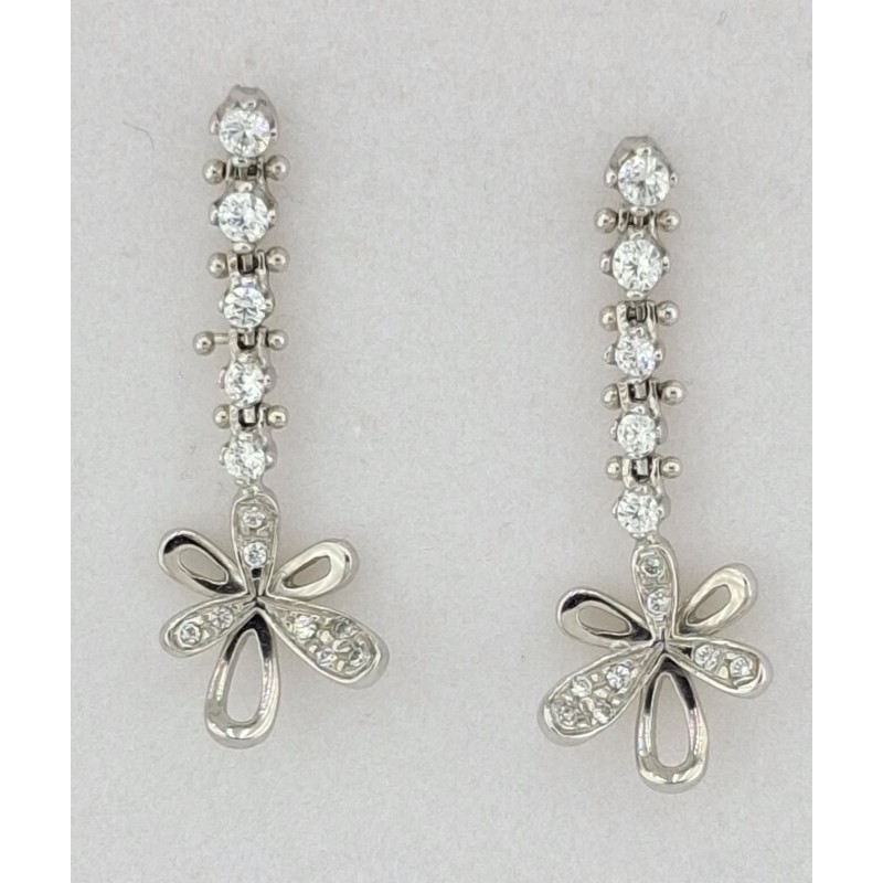 Pendientes para mujer largos fabricados en oro blanco de 1ª ley 18kilates 750mls , pendiente largo con 26 piedras circonitas blancas , pendiente colgante con movimiento largo total 35,00 mm y con cierre de presión