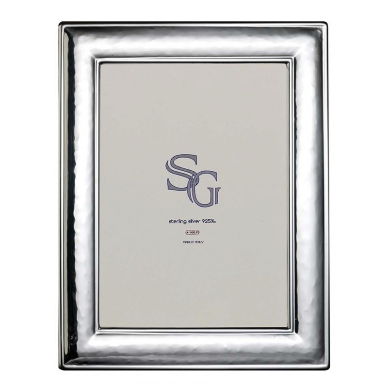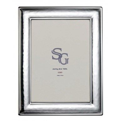 Portafotos fabricado en en plata de 1ª ley 925mls , la galeria el acabado es en brillo y martele. La parte trasera es en madera lacada.