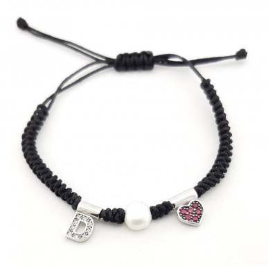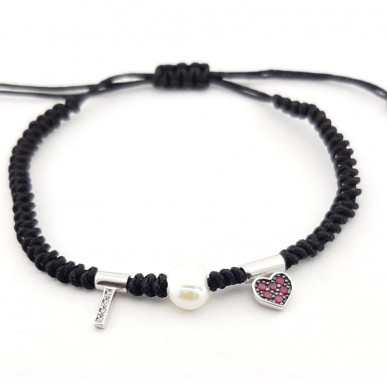 Pulsera de fabricación artesanal en nuestro taller , material de la pulsera de Rayón en color negro , inicial con circonitas blancas y corazón con cristales en color rojo en plata de 1ª ley 925mls y perla cultivada de agua dulce barroca , el acabado es en brillo y con baño de rodio para dar mayor resistencia. La joya de plata que recibe una capa de rodio posee una vida útil más larga, mayormente contra arañazos . Se puede componer la pulsera de culaquier letra que necesite y el color del hilo Rayón a elegir entre varias opciones , ya que se fabrica según sus necesidades. Plazo de entrega de 2 a 4 dias laborables.