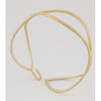 Pulsera tipo esclava para mujer fabricado artesanalmente en plata de 1ª ley 925 mls con baño de oro amarillo con varias formas irregulares, terminado en martele y mate satindo, de medida ancho 24,50 mm en definición . Cierre de gancho.