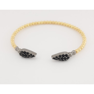 Pulsera de plata de primera ley (925) con baño de rutenio y chapado en oro amarillo de 18kt con circonita coñac. (medida de muñeca: 18 cm.) Pulsera con perfecta combinación bitter-sweet entre la parte más rebelde de sus pinchos y la dulzura de su secuencia de bolitas.