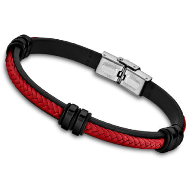 Pulsera Lotus Style para Hombre LS1389-2/2. Es una pulsera original de la marca Lotus Style, para hombre de la colección Urban. Es un modelo elaborado en dos tiras en cuero genuino de color negro y rojo , acero antialérgico e inoxidable en color IP negro. La longitud de la correa es de aproximadamente unos 21 cm y concierre de uña.