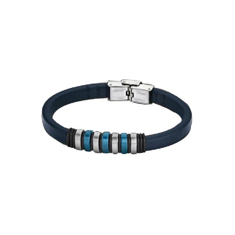 Pulsera Lotus Style LS1827-2/2 para hombre acero y piel color azul. Largo pulsera 21,5 cm Ancho del centro 12 mm ancho de correa 7,90 mm