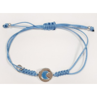 Pulsera en hilo nylón con macrame y disco de plata de 1ª ley 925mls ,con el interior en nácar natural y disco en forma de luna ,ajustable a la muñeca .Medida del disco 11mm .