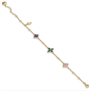 Material: Plata de Ley 925 Color de la plata: Dorado Piedras: SEMIPRECIOUS-LAPISLAZULI, SEMIPRECIOUS-MALACHITE, SEMIPRECIOUS-ROSEQUARTZ Medida ajustable desde 16 a 19 cm