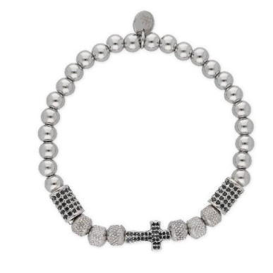 Pulsera para Hombre . Es una pulsera original de la marca Liska , para hombre de la colección Urban. Es un modelo elaborado con bolas en acero de 6,30mm de diámetro y con una cruz central con circonitas en color negro. La longitud es de aproximadamente unos 21 cm