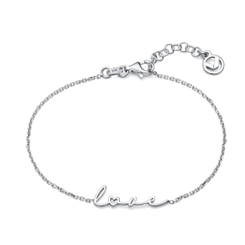 Pulsera Love de plata de ley con baño de rodio, motivo love