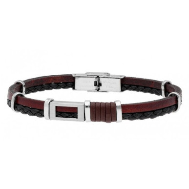 Pulsera para Hombre . Es una pulsera original de la marca Liska , para hombre de la colección Urban. Es un modelo elaborado en cuero genuino de color negro trenzado y marrón liso con acero antialérgico e inoxidable en color plateado. La longitud de la correa es de aproximadamente unos 21 cm y el cierre es de tipo seguridad. Ancho de piel 6.10 mm