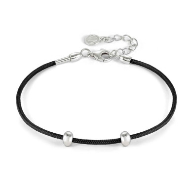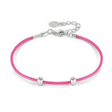 Pulsera SeiMia Candy Edition realizada en cordón 100% de poliéster reciclado y Plata 925 con acabado en rodio blanco. Varios colores disponibles: Rosa Negro. Medida: 19 cm, ajustable a 16 cm. Personalizable con todos los colgantes de la colección SeiMia.