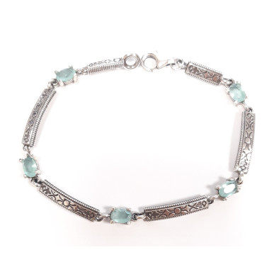 Pulsera para mujer en plata de 1ª ley 925 mls de la marca Top Silver, en barras combinado con piedras de color verde.
