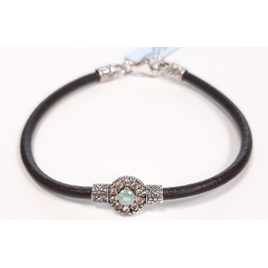 Pulsera para mujer en plata de 1ª ley 925 mls de la marca Top Silver, corona en piedras de color y piel natural de color marrón medida de largo 18,00 cm