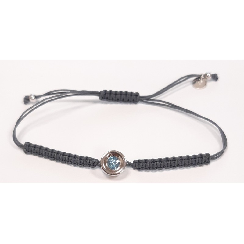 Una pulsera con cordón de macramé gris ?y un topacio??? azul ?n?atural de talla brillante?, ????engastada en una? ?pequeña ??pieza de plata de ??la colección. ? ??El resultado: una joya? simple y sutil, fácil de llevar y combinar,??? ??de un brillo fantástico? y con el color característico de?? la piedra natura???l.? Irresistible, verdad?? ??