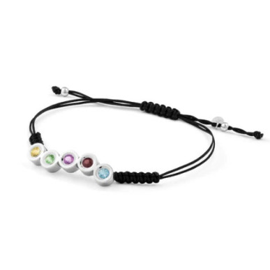 Una pulsera con cordón de macramé fina y delicada pero de efecto espectacular. Una explosión de color con 5 piedras naturales que juntas forman un verdadero arcoiris en pequeño formato. Una joya para lucir... y resplandecer!