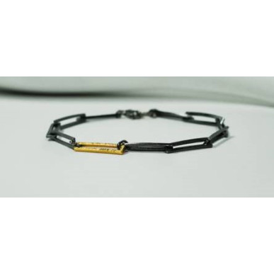 Diseñada en plata de primera ley con acabado oxidado. Una de las piezas está bañada en oro.