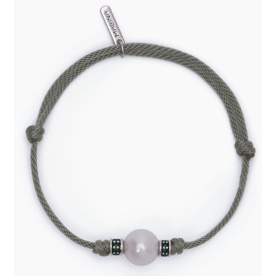 Cerca Descripción del Producto Pulsera para hombre en plata rodiada con cordón verde, perla gris e inserciones con circonitas verdes. • Diámetro de la perla: 11-12 mm • Diámetro de la circonita: 1,2 mm • Tamaño ajustable • Material: Plata 925, Perlas cultivadas, Circonitas