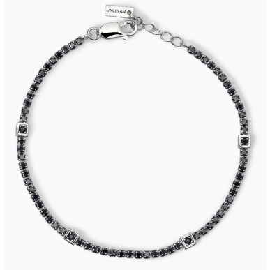 Pulsera tenis ajustable para hombre en plata rodiada con inserciones cuadradas de circonitas negras.