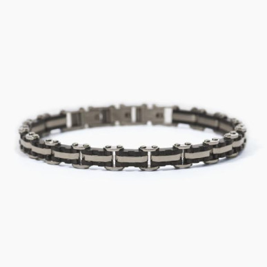 Pulsera para hombre de acero 316L y PVD negro, longitud ajustable de 19 a 21 cm