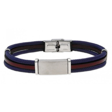 Pulsera para Hombre . Es una pulsera original de la marca Liska , para hombre de la colección Urban. Es un modelo elaborado en cuero genuino de color marrón y cuerda nautica azul cierre es de tipo seguridad. Ancho de piel 9,00 mm