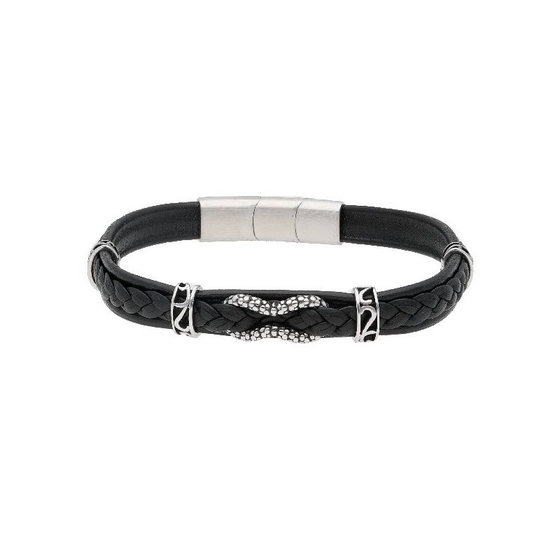 Pulsera para Hombre . Es una pulsera original de la marca Liska , para hombre de la colección Urban. Es un modelo elaborado en cuero genuino de color negro y cierre es de tipo seguridad. Ancho de piel 8.20 mm