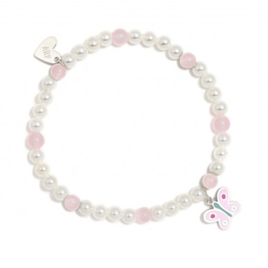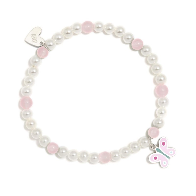 Pulsera elástica de perlas naturales y plata de ley con baño de rodio y esmalte.