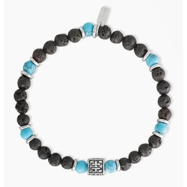 Botón de arce 316L, elementos de 8x8 mm, turquesa y piedra de lava Ø 6 mm, longitud 20 cm