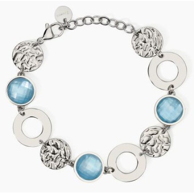Pulsera de mujer en acero 316L con elementos martillados Ø 12 y con PVD rosa Ø 15 mm y con bisel y vidriera Ø 10 mm, longitud ajustable de 16 a 19 cm