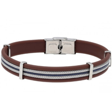 Pulsera para Hombre . Es una pulsera original de la marca Liska , para hombre de la colección Urban. Es un modelo elaborado en , nilón trenzado en color azul , beig y con la base en caucho marrón con adornos en acero antialérgico e inoxidable en color plateado. La longitud de la correa es de aproximadamente unos 21 cm y el cierre es de tipo seguridad. Ancho de 10,00 mm