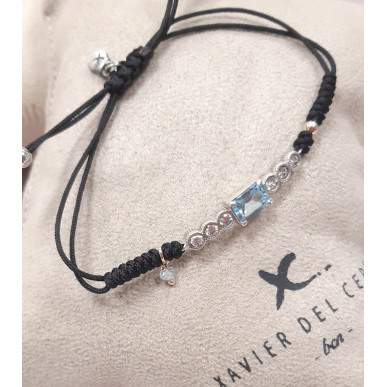 Pulsera plata de ley combinada con piedra natural como el topacio azul rectangular 7,5x5mm y circonitas blancas