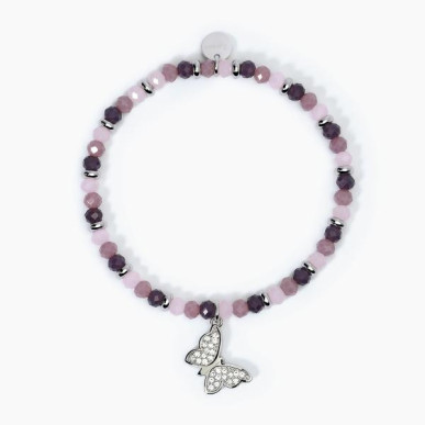 Pulsera elástica de acero 316L con cristal facetado multicolor Ø 4 mm, clip 15x10 mm y cristales Ø 1,25 mm, 17 cm de largo