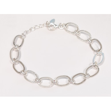 Pulsera para mujer en plata de 1ª ley con la malla grabada , medida ajustable desde 18,50 a 20,50cm ancho de la malla en oval 13x9 mm