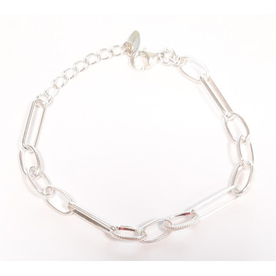 Pulsera para mujer en plata de 1ª ley con la malla grabada y lisa , medida ajustable desde 18,50 a 20,50cm ancho de la malla en oval 10,75x6,00 mm y 17,00x4,50 mm