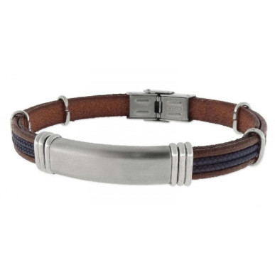 Pulsera para Hombre . Es una pulsera original de la marca Liska , para hombre de la colección Urban. Es un modelo elaborado en cuero genuino de color marrón , dos tiras de nylón en color azul marino acero antialérgico e inoxidable en color plateado. La longitud de la correa es de aproximadamente unos 21 cm y el cierre es de tipo seguridad. Ancho de piel 8 mm y de placa 9,50 mm .Se puede grabar en la parte central sin ningún coste adicional.