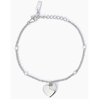Descripción del Producto Pulsera de plata con cadena forzada con colgantes superpuestos en forma de corazón. El colgante principal se puede personalizar grabando fechas, iniciales o nombres mientras que el corazón en pavé aporta brillo a la joya. • Tamaño del colgante: 2,8 x 6,3 mm • Tamaño de las circonitas: 1,25 y 2 mm • Cierre de mosquetón • Tamaño ajustable, largo ajustable de 16 a 19 cm • Material: Plata 925, Circonitas