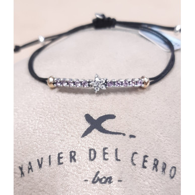Pulsera para mujer fabricada en plata de 1ª ley 925 mls , tira en piedras de color Rosa y estrella en piedras blancas ,ancho de la estrella 5,0 mm , terminado con hilo de rayón ajustable a la medida