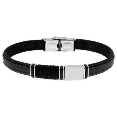 Pulsera para Hombre . Es una pulsera original de la marca Liska , para hombre de la colección Urban. Es un modelo elaborado en cuero genuino de color negro , nilón negro y cierre es de tipo seguridad. Ancho de piel 8.00mm