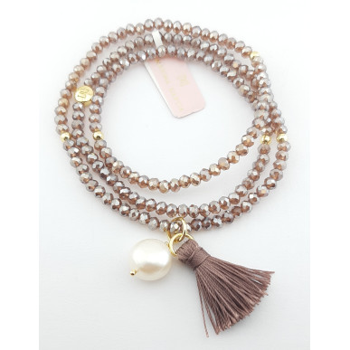 Pulsera Marina García para mujer de la colección Zen BOREAL fabricada en plata bañada en oro amarillo compuesta por cristales Strass facetaods en color y colgante con perla cultivada de agua dulce . Esta pulsera de diseño elástico puede ser utilizada como tobillera y gargantilla.