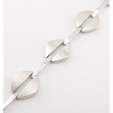 Pulsera en oro blanco 1ª ley 18kilates 750mls , formada en barritas y tipo rombo en brillo y mate medida 19,50 cm de largo
