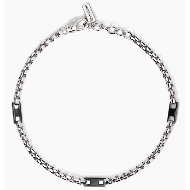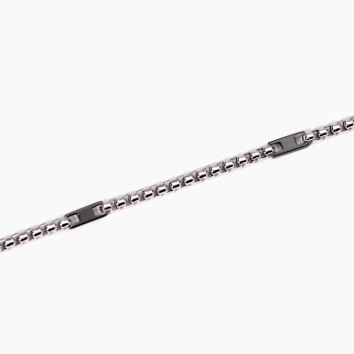 Pulsera ajustable para hombre en plata rodiada con cadena veneciana y elementos bruñidos. • Tamaño de los elementos bañados en oro: 9 x 2 mm • Tamaño ajustable, largo de 18,5 a 20 cm • Cierre de mosquetón • Material: plata 925