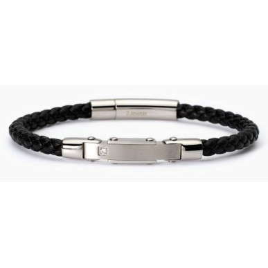 Pulsera de arce 316L con adorno de piel sintética negra, Ø 6,5 cm, circunferencia 20,5 cm