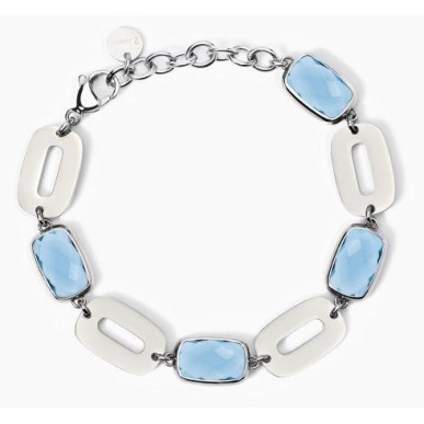 Pulsera de acero inoxidable 316L con elementos de 18x11,5 mm y 16x11 mm con cristal azul facetado, largo ajustable de 17 a 20 cm