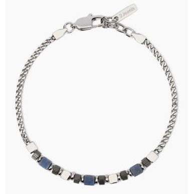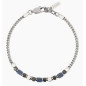 Pulsera de acero 316L con cadena libre de Ø 2,5 mm, discos de bronce PVD barril de Ø 4 mm, cubos de 4x4 mm pulidos y sodalita, largo ajustable de 19 a 21 cm