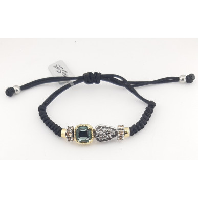 Pulsera para mujer en plata de 1ª ley 925 mls de la marca Top Silver, con montura en grapa en plata chapada y piedra turmalina y abalorios en baño de oro amarillo , hilo Naylón en color negro ajustable a la medida de la muñeca.