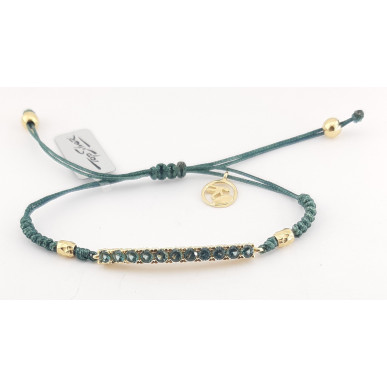 La pulsera está fabricada en plata de 1ª ley 925mls y piedras circonitas de color y montura en chapado en oro . Ancho de la pulsera 3,30 mm largo 35,00mm ,terminado con hilo de rayón ajustable a la medida ..